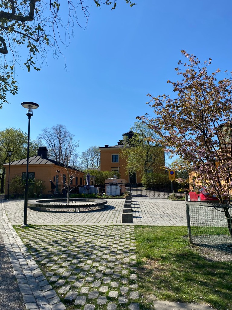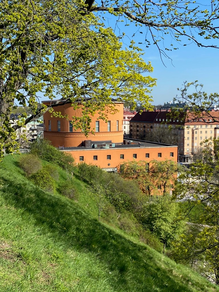 Stadsbiblioteket på Sveavägen hamnade i fokus och så här i maj, innan all grönska har slagit ut ordentligt, får man en bra överblick av biblioteket från kullen. Biblioteket ritades av Gunnar Asplund på 1920-talet och öppnade 1928. Epoken kallas nyklassicism, tjugotalsklassicism eller Swedish Grace. Det är verkligen en mycket elegant stil som blickar tillbaka på den klassiska arkitekturen från Antiken, även om den nyklassiska stilen är avskalad och enklare.