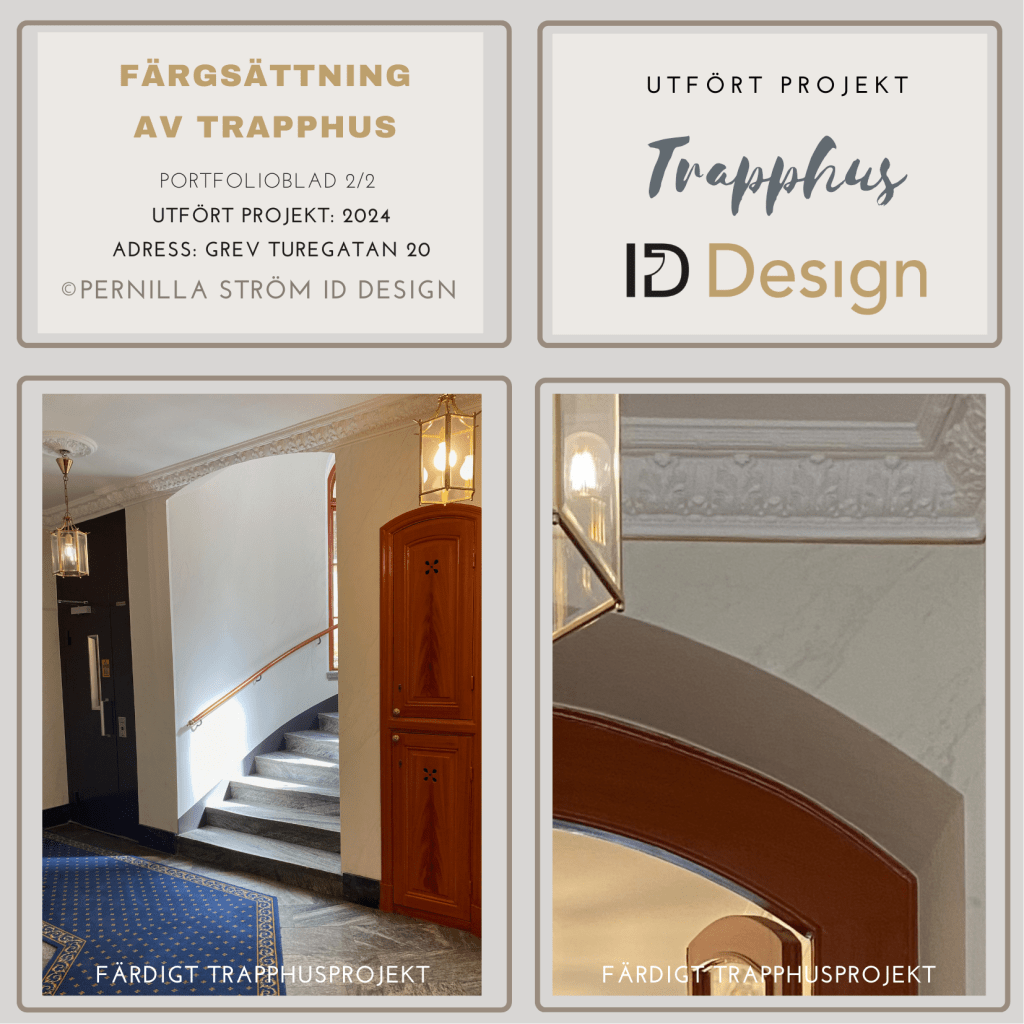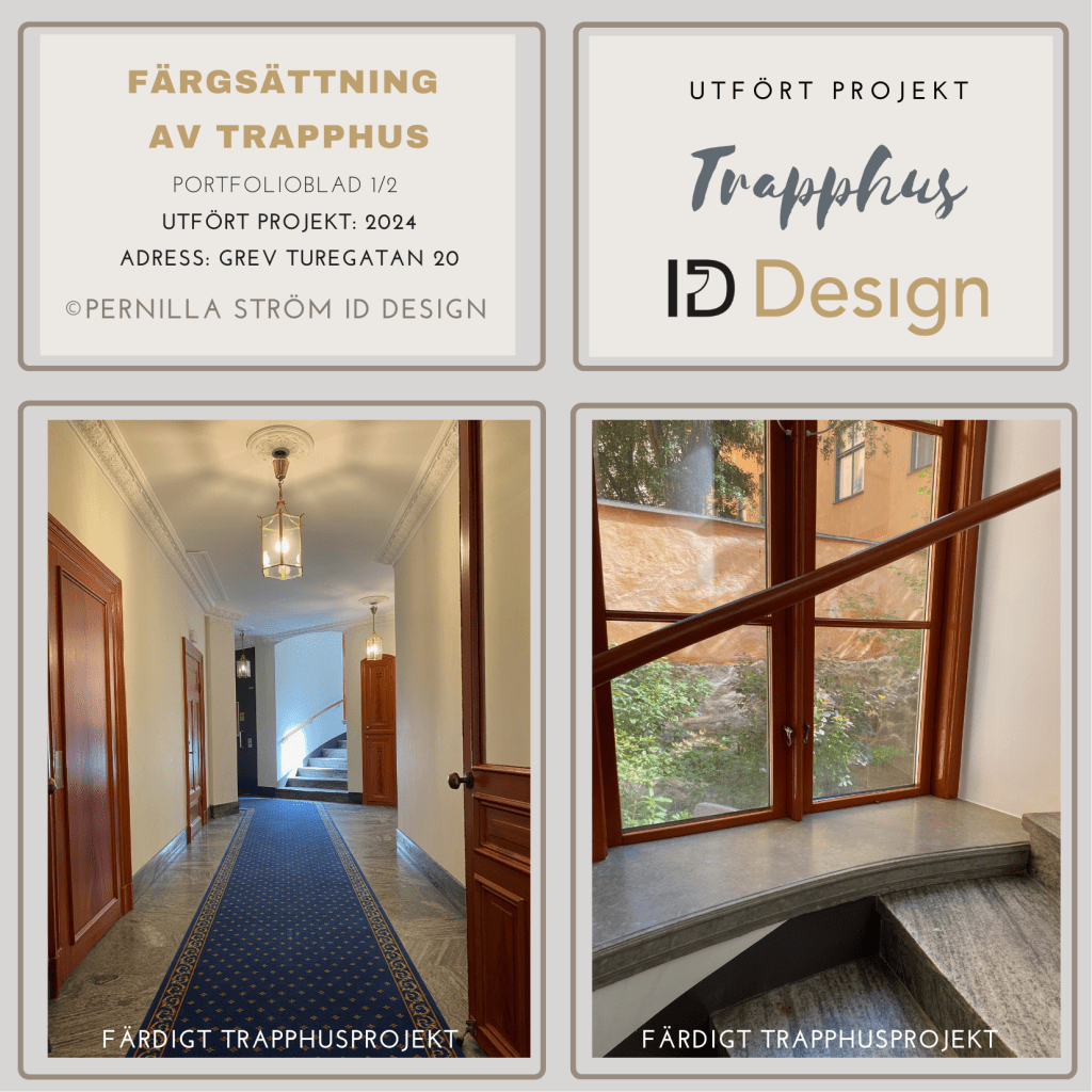 Du är varmt välkommen att höra av dig om du vill ha hjälp med ett färgsättningsförslag till trapphus eller annan miljö. Kika även in på hemsidan för fler exempel.