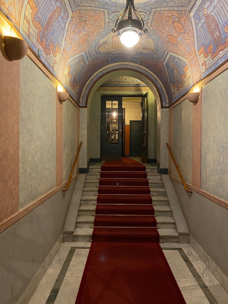 Det nationalromantiska trapphuset är så vackert med rikliga mönster och dova färger. Även om jag själv uppskattar stilen, så skulle jag inte vilja att den återupprepades. Varför då? Jo, för att vi människor måste förnya oss är det enkla svaret, men vi vill inte heller härma något som var populärt tidigare. Självklart kan vi göra nytolkningar.
