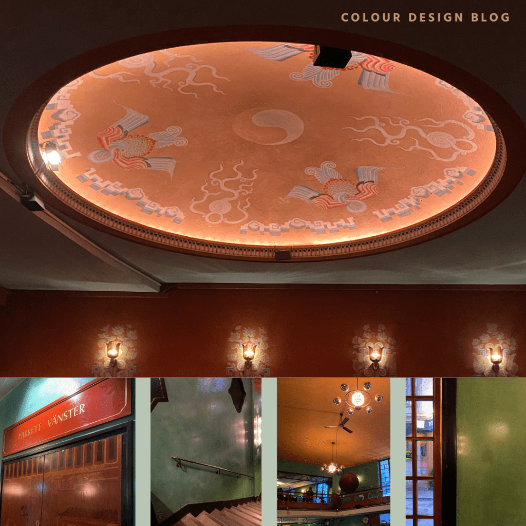 När jag pluggade Internationell restaureringshistoria på KTH lärde jag mig att när man ändrar något gammalt bör det synas att det är en ändring som är gjord. Därför tänker jag att ett måleri i ett trapphus gärna får följa den röda tråden och gifta sig med det gamla måleriet, men det får också särskilja sig på ett genomtänkt sätt. Spara ut det som går att spara. Låt det synas vad som är vad.